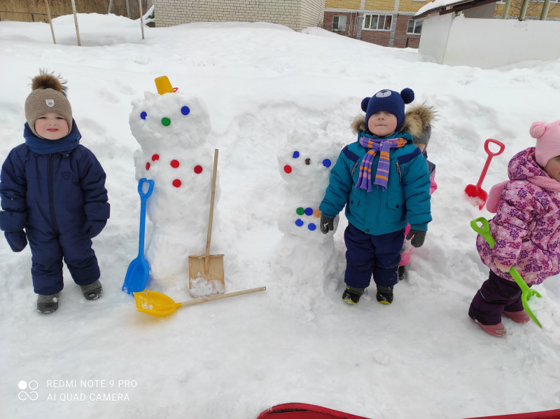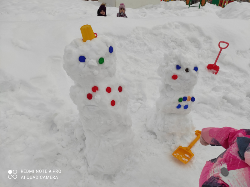 Зимняя прогулка, снеговики